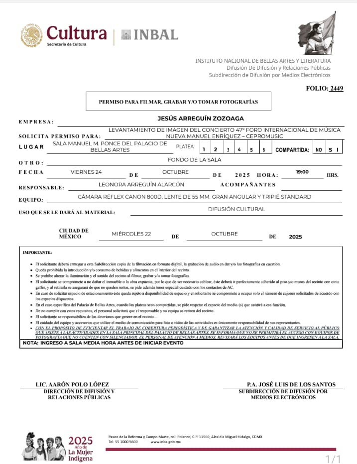 Estreno Mundial, dentro del Foro Internacional de Música Nueva "Manuel Enriquez"