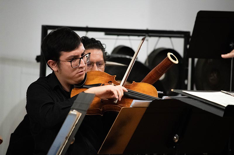Alfonso Herrera Gómez, percusiones: triángulo, piedras de río y botellas de vidrio