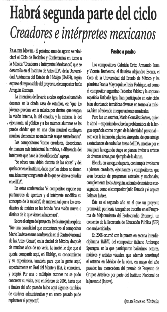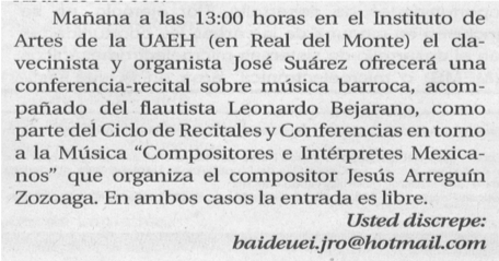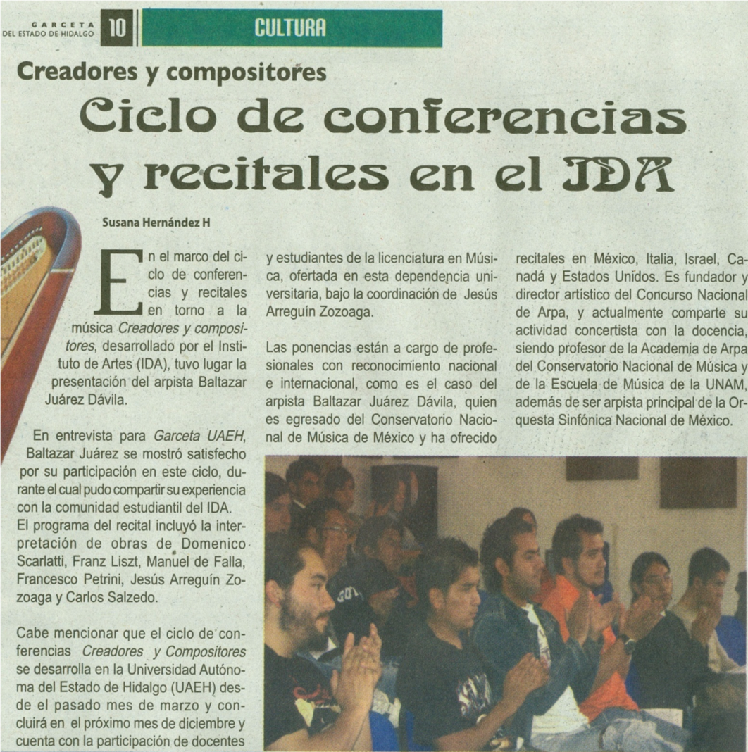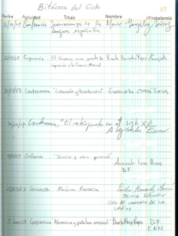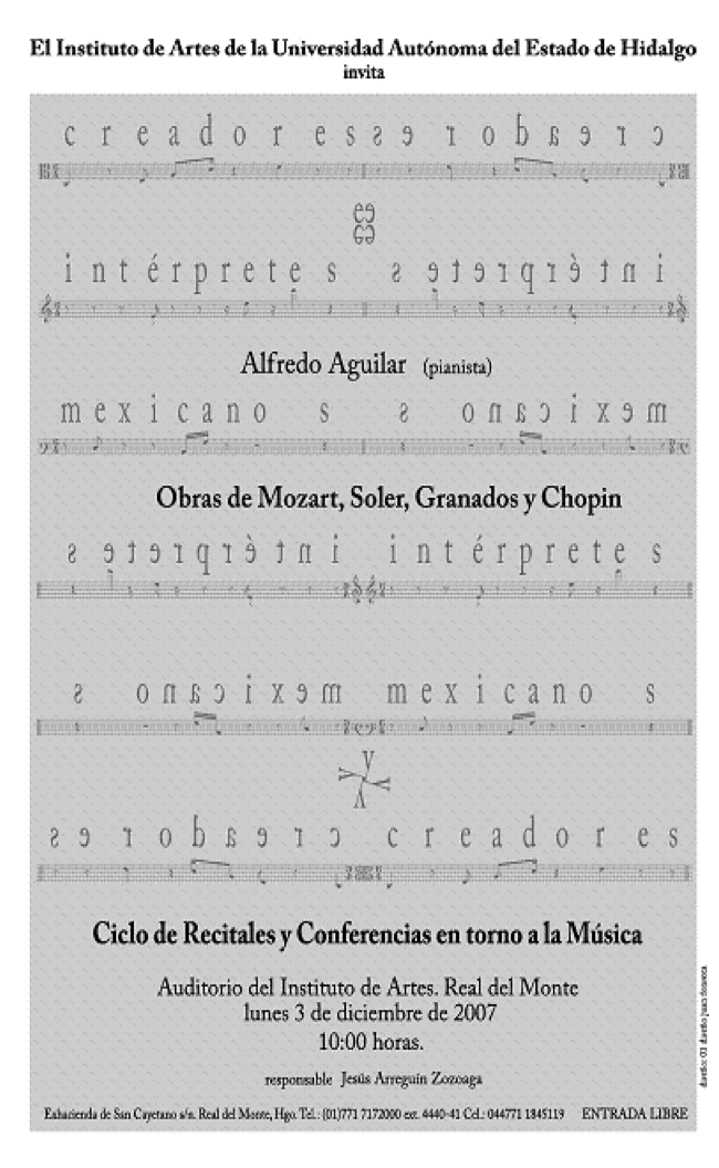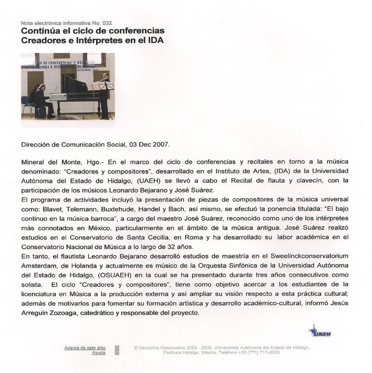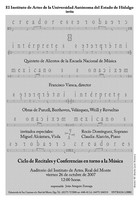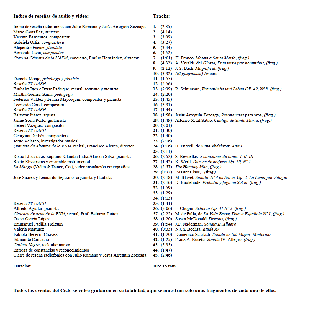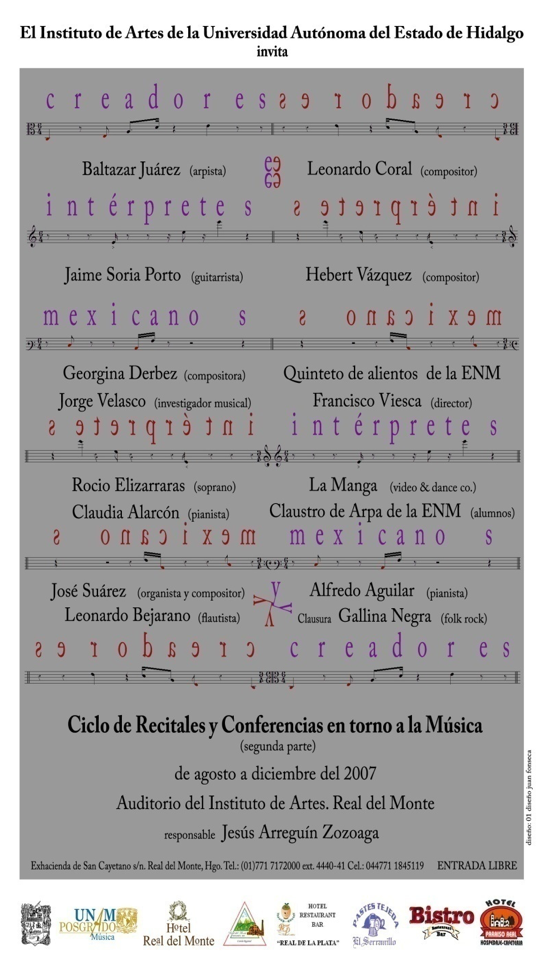 Al Lic. Juan Randell Badillo, Director del IDA y al Secretario Académico Mtro. Tomas Herrera, constantes asistentes al Ciclo, se les agradece la presentación que hicieron de los músicos y conferencistas a lo largo de todo el Ciclo de Recitales y Conferencias en torno a la Música, Creadores e Intérpretes Mexicanos.