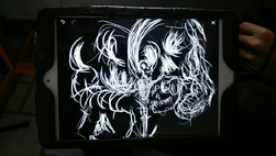 Alto, de suma importancia, total ya que como dibujantes usamos el ritmo y el tiempo de la pieza musical para interferirlo y crear algo totalmente en vivo realizando un proceso de sincronización entre director, pianistas, dibujantes. El dibujo y los colores fueron improvisados, al momento, siguiendo el ritmo de la música. Yo aunque tenía bocetos, no tenía muy en claro como plasmar la música.