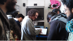 1. Los chicos observan las indicaciones del director musical para realizar sus diseños.