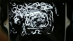 Se tenía contemplado que personas del público hicieran uso del hardware para improvisar sus propios trazos y potenciar su experiencia artística, pero las disposiciones entre el equipo y la escena eran incompatibles espacialmente, y disponer de Ipad en la zona del recital irrumpiría con la atmósfera planteada de evocar una sala de música privada del período Romántico, además de otros problemas técnicos difíciles de resolver como la proyección de la imagen, ubicación de los cañones y demás detalles que incidían directamente con la sensación que se le quería proporcionar al público.