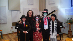 • Un altar viviente representado por dos pianistas caracterizados como Catrín y Catrina.