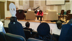 La Primera representación de Schumann´s Skull con 25 personas como público, se verifica como el recital privado planteado inicialmente en relación al contexto de los siglos XVIII y XIX -conforme al aforo con mobiliario en el escenario- no sin cierta “incomodidad” de parte de los asistentes por las “presencias” dispuestas en las butacas, como si estas observaran (teatro dentro del teatro). El colectivo en general por tradición, asume que es observado ya sea su “ángel guardián” o santos que lo procuran.